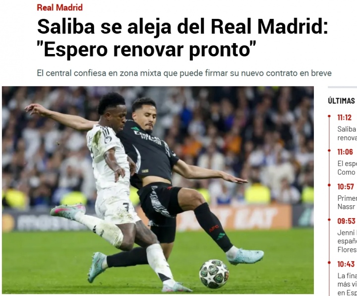 《马卡报》表示:萨利巴此前是皇马加强后卫线的选项之一,至少是中期目标。但从萨利巴最近的一次采访来看,这种可能性正在减弱。萨利巴表态称:“我希望很快(续约),上天是伟大的,今年我们会努力赢得一切。”