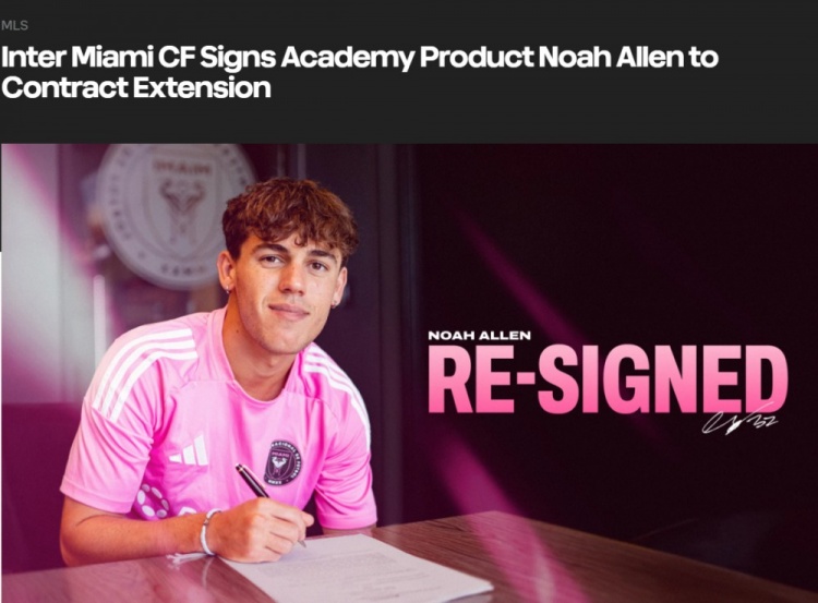 9月19日讯 迈阿密国际宣布与青训球员诺亚-阿伦续约至2028年。