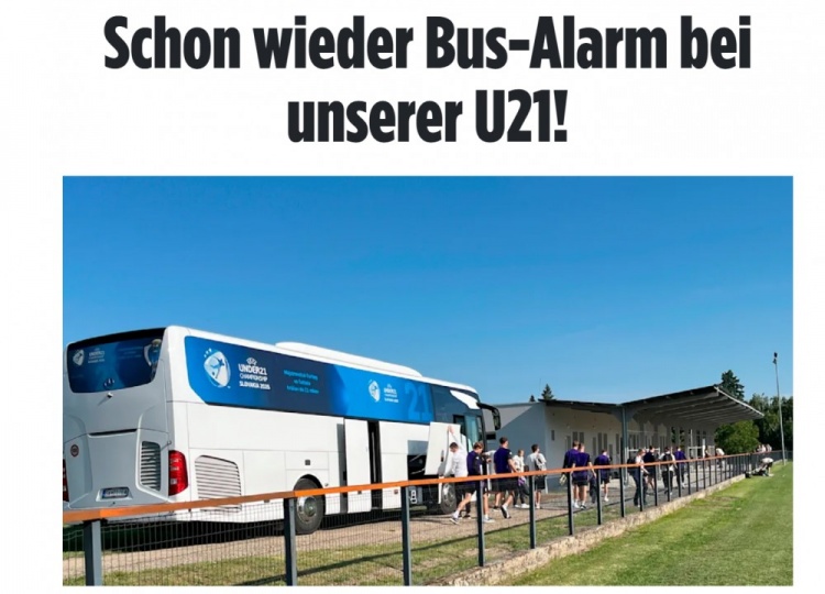 6月29日讯 据德媒《图片报》报道,德国U21大巴两次遭遇意外“事故”。